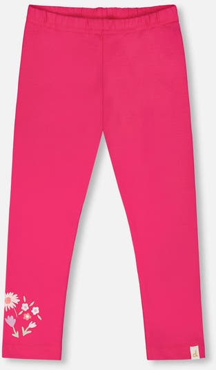 Our organic cotton jersey legging in pink is a soft essential with a playful detail. This slim fit bottom features an elastic waistband, a full-length cut, and a small floral motif near the hem for extra charm. Crafted in stretchy organic cotton, it’s perfect for girls of all ages, easy to coordinate with tops, dresses and sweaters from our "Little Meadow" collection.