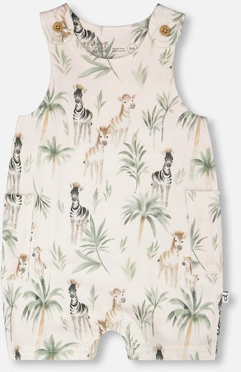 Playful and easy, this organic cotton jersey romper brings safari spirit to little boys’ wardrobes. The sleeveless one-piece features shoulder buttons, roomy front pockets, and a lively allover zebra print for a fun, adventurous look. With inseam snaps for quick changes, it’s as practical as it is charming, making it a must-have.