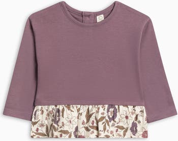 Colored Organics Organic Cotton Lily Long Sleeve Ruffle Hem Top, Main, color, Grape / Mauna Floral