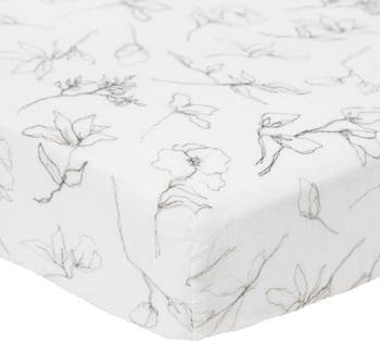 Made of lightweight, breathable cotton muslin, this playfully printed fitted crib sheet is crafted with a quick-drying open weave that's soft and gentle.