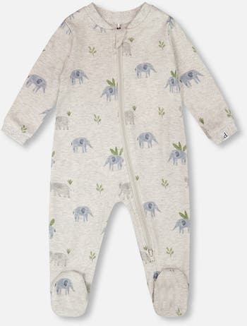 Cuddle time just got sweeter with this baby one-piece pyjama in grey with elephant print from our “Starry Night” collection. The cozy pyjama features long sleeves, built-in footies, and a full-length zipper for easy changes, all covered in a playful allover elephant motif. Crafted in 100% organic cotton, it’s soft, breathable, and gentle on baby boy’s delicate skin.