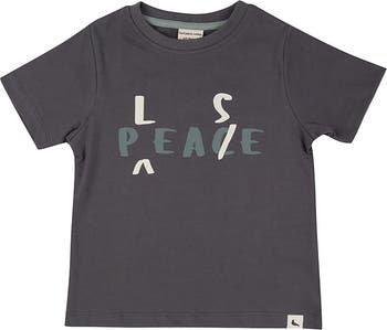In a charcoal-grey base, our jersey short-sleeve kids top features our peace please slogan print. Made from our super-soft 100% GOTS organic cotton jersey fabric, this sustainable kids top is great for those warmer days playing under the sun or running around indoors! Printed using azo-free dyestuffs, this gender-neutral top is kind to your child's skin and eco-friendly to our environment too. Complete the look with any of our non-seasonal range of bottoms or use as a layering piece under our kids Jumpsuit.