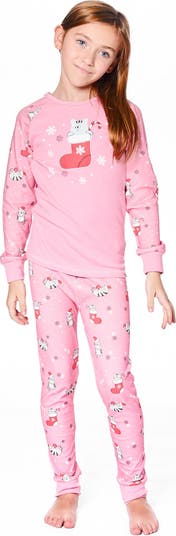 This organic cotton interlock sleepwear set makes every nighttime tuck-in and morning wake-up as adorable as can be! Perfect for sleeping and lounging, these ultra-soft pajamas feature a long raglan sleeve top with a crew neckline, an elastic waist pant with solid cuffs, and a charming cat.