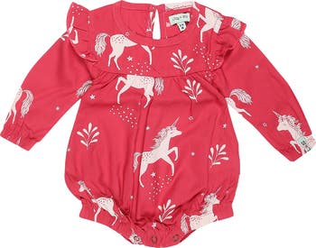 Our organic cotton baby rompers are designed to keep your little one's non-seasonal wardrobe suitable for adventures & snoozing. Our pink long-sleeve baby girls romper with our sweet unicorn print is made from our super-soft 100% GOTS organic cotton and is kind to delicate skins and the environment too! Your baby will adore this eco-friendly and sustainable bubble romper to bits - especially with our pretty frill neckline. Find nickel-free popper fastenings to the crotch & keyhole fastenings for easy on-the-go dressing and comfortable soft elastication to the legs.
