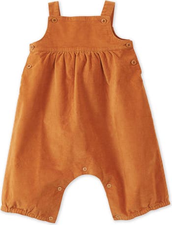 The organic cotton velvet baby jumpsuit is designed in Raw Sienna, perfect for a little one's special occasions. The baby jumpsuit is classic and elegant, and made from 100% organic cotton fabric of the highest quality, which is incredibly soft on the skin.