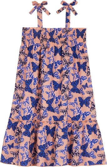 A flattering summer dress in an intricate butterfly design with tie straps for the perfect fit. Fashioned from organic cotton and featuring a pretty ruffled hem.