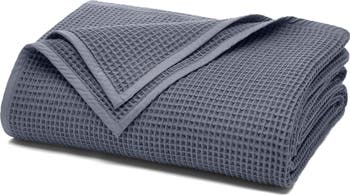Slumber in total softness with this cozy waffle-knit blanket made from breathable organic cotton.