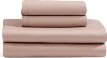 - 4-piece set includes flat sheet, fitted sheet and two standard pillowcases