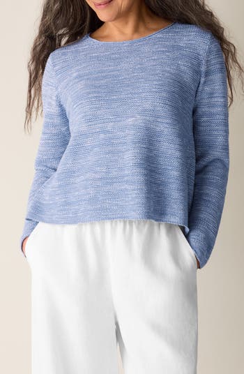 Lightweight and cool, this relaxed organic cotton-and-linen blend sweater is knit in a slub texture and finished with a subtly rolled crew neckline.