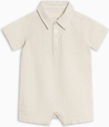 Your little one's style will be brought to a whole new level with our Mato Seersucker Collared Romper! With its short sleeve, structured collar, and front patch pocket, this romper effortlessly combines a laid-back vibe with a classic look.