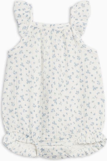 The Sandra Muslin Tank Bubble Romper is a warm-weather favorite filled with sweet details. Featuring flutter ruffle straps and soft gathering along the neckline, this romper offers a comfy, airy fit for sunny days. Ruffled leg openings add playful charm, while hidden snaps make diaper changes quick and easy.