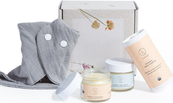 Treat a new baby to this unique organic gift box filled with organic products. This gift is something new mom and new baby will love to receive and use.
