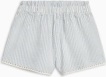 The Patty Seersucker Scalloped Trim Shorts are ready for sunny adventures and carefree play. Designed with a comfy elastic waist and a relaxed fit, these shorts feature sweet scalloped trim at the leg openings for a fun, airy touch. Easy to wear and easy to love, they’re perfect for everything from playdates to picnics.