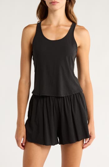 Organic pima cotton provides warm (but not too warm) comfort in this lounge tank complete with a racerback for effortless movement.