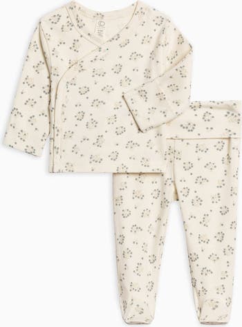 The Wrap Top and Pant set is back with a new and improved fit! A must-have for your babe s closet. The Wrap top features reinforced snap closure and turn back sleeve opening mitts. The Pants are extra cozy with its fold-over waist and soft texture keeping your baby s little legs warm.