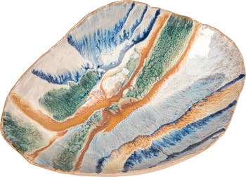 This Organic Spectrum Stoneware Footed Bowl is a masterpiece of design and color. The reactive glaze technique creates a stunning multi-colored effect, ensuring that no two bowls are exactly alike. The 11.50 inches in length, 8.00 inches in width, and 3.75 inches in height dimensions offer ample space for a variety of uses, from serving to display. The bowl's footed design not only adds an element of sophistication but also elevates its contents, making everything within it more enticing. Whether used for special occasions or as a permanent fixture in the home, this bowl is a functional work of art that will add a burst of color and life to any setting. Its organic shape and vibrant finish make it a conversation piece that's as beautiful as it is practical.