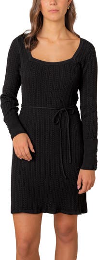 Effortlessly chic is the best way to describe our beautiful square neck sweater dress crafted from soft organic cotton. Features an allover cable stitch, removable waist tie, and gold button details at the cuffs. This is the one you'll be wearing all season long.