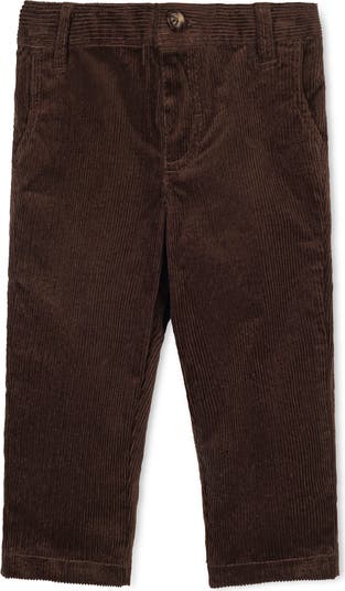 Our pants are crafted from a fine wale organic cotton corduroy with just the right amount of stretch for boy. Features traditional straight leg styling with a zip fly closure, faux horn button, and an adjustable inner elastic waistband for a flexible fit. Side pockets and back welt pockets complete the look.