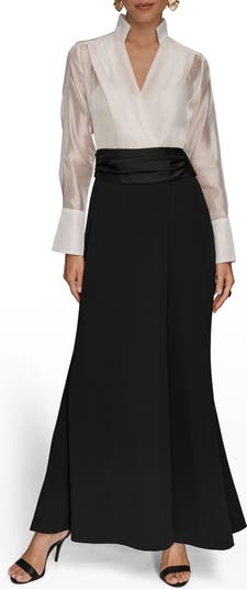 Donna Karan New York Organza Bodice Long Sleeve Gown
