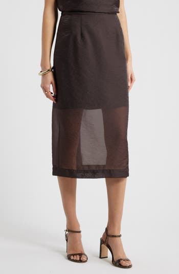 A sheer organza overlay distinguishes this midi pencil skirt that's sure to dress up your capsule wardrobe.