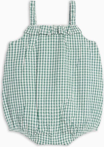 The Rosalie Seersucker Ruffle Bubble Romper is full of sweet details made for warm-weather fun. With a soft ruffle at the neckline and a breezy bubble fit, this romper keeps your little one comfy and cute all day long. Bow-tie straps and easy snap closures make it as practical as it is adorable, perfect for sunny strolls and playtime alike.