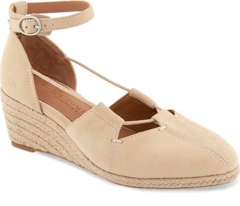 A lace-through topline and supple suede upper distinguish an espadrille-inspired wedge featuring a cushioned footbed an jute-wrapped heel.