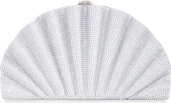 Origami Fan Crystal Embellished Satin Clutch
