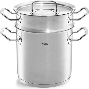Ideal for cooking large amounts of food, the Fissler Multipot with Steamer Insert is perfect for tasks such as boiling pasta, steaming vegetables, and cooking whole lobsters. Celebrating 50 years, the Original-Profi Collection is an award-winning, iconic stainless steel cookware line. Crafted in Germany from up to 90% recycled 18/10 stainless steel, our multipot includes hygienic rivet-free construction for easy cleaning, an energy-efficient CookStar base for even heat distribution, extra-large pouring rims to prevent spills, and interior measurement markings. The steamer insert adds versatility, making it easy to prepare healthy, steamed dishes alongside your favorite soups, broths, and stews. Perfect for any kitchen, this multipot ensures convenience, efficiency, and exceptional cooking results.