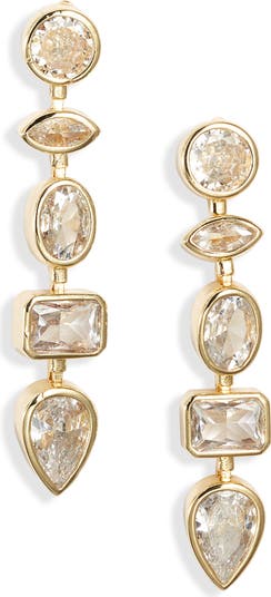 These chunky drop earrings feature dazzling bezel-set cubic zirconia stones designed in five different shapes for a constellation brought to life in a statement moment.
