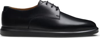A rich leather upper and streamlined profile distinguish a wear-anywhere derby featuring comfortable underfoot cushioning and a sturdy rubber sole for added traction.