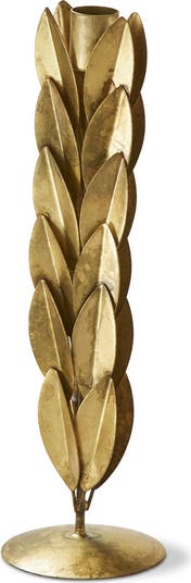 - Orla Medium Taper Holder is made of antique brass gold iron and measures 10.5 inches in height, 3 inches in length, and 3 inches in width.