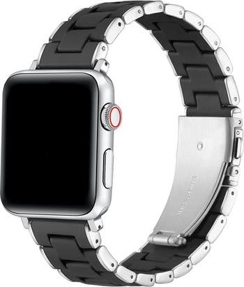 Posh Tech Orla Silicone + Stainless Steel Band for Apple Watch, Alternate, color, Black