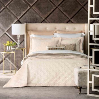 - The geometric stitching of the bedspreads emphasizes the minimalistic design of the product.
