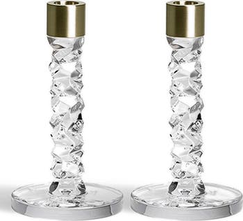 Orrefors Carat Set of 2 Small Crystal & Brass Candlesticks, Main, color, Brass