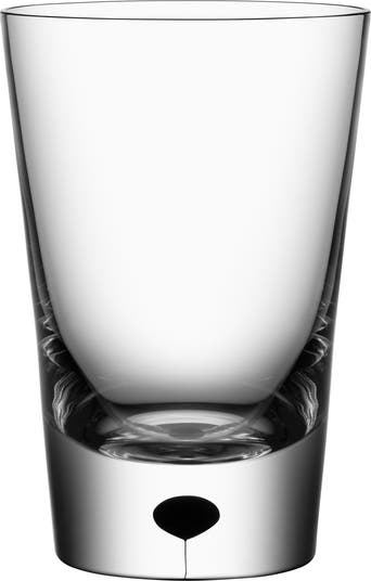 A hint of black color in the stem adds a distinctive modern edge to handmade crystal glasses designed with stylish socializing in mind.