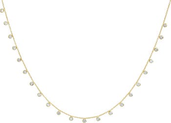 Sparkling cubic zirconia line this delicate chain necklace plated in 22-karat gold, bringing an elegant mix of texture and light to your look.