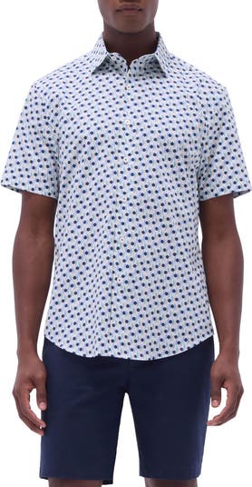 Breathable stretch cotton patterned in dots and curves brings sunny-day comfort to a shirt that looks smart when it's tucked in and keeps you relaxed and casual when it's left out.