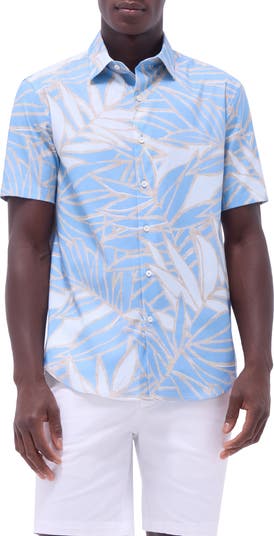 Orson Leaf Print Short Sleeve Stretch Cotton Button-Up Shirt