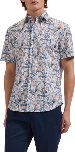 Breathable, stretch-enhanced cotton patterned in swirling paisleys makes a warm-weather favorite of a shirt designed with a pointed collar to keep you looking smart even when you don't have to. Wear it tucked or untucked depending on the day, the occasion or your mood.