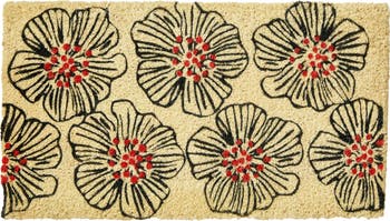 Introducing the OSAKA FLOWER COIR MAT, a timeless addition to your home that combines functionality with artistic flair. For over 30 years, this beloved doormat has been a favorite among homeowners, and it's easy to see why. Crafted from hand-spun coir, this natural doormat features a stunning hand-painted design of black flowers accented with vibrant red, set against a beautiful natural coir background. Measuring 30 inches in length, 17 inches in width, and 1 inch in height, it fits perfectly at your doorstep, welcoming guests with style.