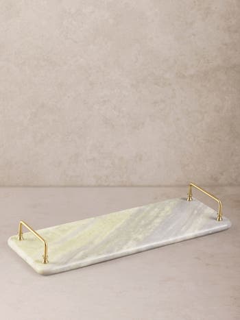 The Osaka Tray celebrates the elegance of semi-precious onyx, where natural beauty meets refined design. Hand-carved from premium green onyx marble, it showcases a stunning interplay of soft green hues blended with grey undertones. Each piece is entirely unique, with delicate veining and tonal variation highlighting the individuality of the stone. Polished to a luminous finish, Osaka’s graceful form brings substance and sophistication, transforming a functional tray into a decorative work of art. Crafted with meticulous attention to detail, it embodies both durability and artisanal refinement. Designed for versatility, the Osaka Tray enhances a variety of settings. Use it to serve beverages, hors d’oeuvres, or desserts, or display it as a base for candles, florals, or cherished objects. Its natural tones harmonize effortlessly with both contemporary and traditional interiors, offering a balance of warmth and quiet sophistication. More than a serving piece, Osaka reflects the enduring value of craftsmanship and design integrity, adding elegance and depth to everyday living.