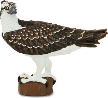 Explore the world of birds with the Safari Ltd. Wings of the World Osprey Figurine. This meticulously crafted model captures the essence of one of the most fascinating birds of prey, the Osprey, known globally for its prowess in fishing. Perched on a realistic-looking post, this Osprey figurine is designed with exceptional attention to detail, from its stark brown and white plumage to the characteristic dark mask across its eyes. Each feature is hand-painted to ensure the highest level of realism and quality, reflecting the bird's natural appearance in the wild. At 2.75 inches long and 2.25 inches high, this Osprey model is perfect for educational purposes, providing a tangible way to study the features and behaviors of this incredible bird. It’s an ideal tool for educators, parents, and bird enthusiasts to engage young minds in the fascinating world of ornithology and environmental science. Whether added to a classroom, used in home schooling, or included in a bird watcher’s collection, this Osprey figurine serves as both an educational aid and a delightful decorative piece.