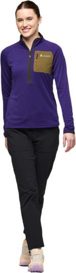 A fleece fit for movement, the Otero Half-Zip Pullover features a fitted silhouette, a recycled polyester blend, a raised grid back for more warmth and breathability, and concealed zippers. This technical fleece is great for cool weather hikes or other adventures. The most technical fleece in our lineup is great for cool weather outdoor pursuits Description The most technical fleece in our lineup is great for cozy warmth or cool weather hikes How it fits Slim Fit Features Grid back fleece for warmth & breathability Zippered patch chest pocket Offset underarm seam for mobility Thumbholes in sleeves make layering easy Materials Shell: 100% recycled polyester (215gsm)Woven overlay/chest pocket: 85% nylon, 15% spandex (148gsm)