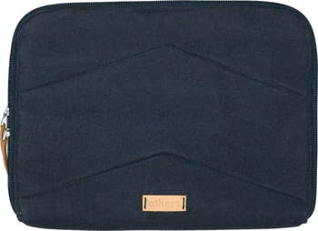 Cotton tablet sleeve, handcrafted in Jashore, Bangladesh. The sleeve is made from durable cotton fabric with leather details, padded with EVA memory foam for optimal protection. The sleeve measures 28x21cm and will fit 10-11” tablet sizes. Your purchase directly supports artisans in providing for their families, improving living standards, and securing their children’s education.