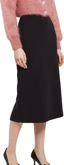 Solid midi skirt with slit and refined linear design.