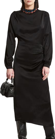 Pure viscose fluid long dress with turtleneck and long sleeve.
