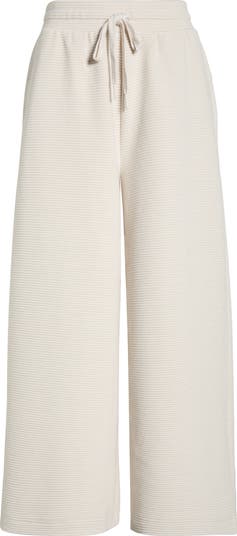 A ribbed finish and roomy wide legs define these cotton-blend pants made for cozy polish whether lounging or stepping out.