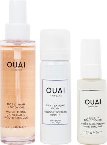 How to use: Mist Leave In Conditioner lightly throughout damp hair prior to brushing or heat-styling for added conditioning, thermal protection and control. Apply a quarter-sized dollop of Dry Texture Foam into the palm of your hand and apply to damp or dry hair from the ends up for a beachy, lived-in texture. Apply Rose Hair & Body Oil from head to toe for softly, beautifully illuminated hair and skin.