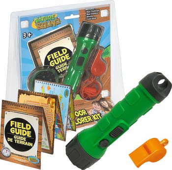 NATURE BOUND: OUTDOOR EXPLORER KIT - Inspire a love for outdoor adventure and hands-on learning with the Nature Bound Outdoor Explorer Kit, a fun and educational set designed to get kids off the couch and into the wild—whether that’s the backyard, the park, or even an imaginary fort on a rainy day. This complete kit includes a press-and-hold LED flashlight, a glow-in-the-dark compass, a safety whistle, and an activity-filled field guide that encourages exploration and discovery. Kids will learn how to navigate using the compass, understand directions like north, south, east, and west, and use the whistle to signal for fun or safety—all while building confidence and engaging in imaginative play. The flashlight is specially designed with a press-and-hold feature, so it only lights up when in use—no more drained batteries from being left on by accident! Perfect for hikes, camping trips, or indoor adventures, this kit turns any environment into a playground of curiosity. Packaged in a beautifully designed clear blister pack, it makes a fantastic gift for birthdays, holidays, or party favors. Designed in the USA and safety-rated for children ages 3 and up, the Nature Bound Explorer Kit is a wonderful way to encourage screen-free fun, real-world skills, and an early love for the outdoors. INCLUDES: 1 Real Flashlight, 1 Real Compass, 1 Whistle, 1 Field Guide.