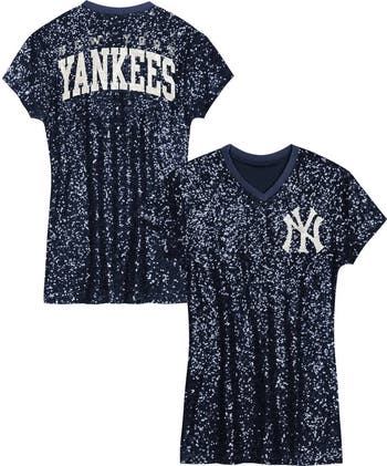 Little fans can add shimmering team spirit to game day with this New York Yankees Sequin V-Neck Dress. It features dazzling sequins all over and the team name in sequin details across the back. With an embroidered logo patch on the left chest, this New York Yankees New York Yankees dress draws attention to their growing fandom.